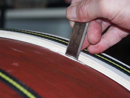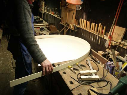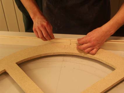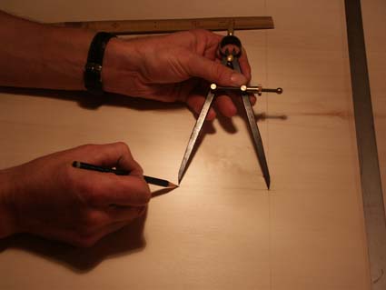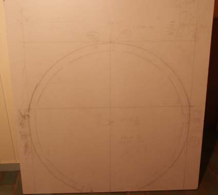 Spanplatte: Die Trommel wird aufgelegt, der Umriss abgetragen. Dann