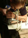 Leim versehen, der bearbeitet werden soll. Es knistert und knackt mächtig im Gebälk.