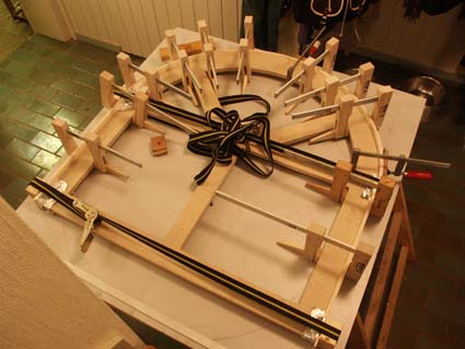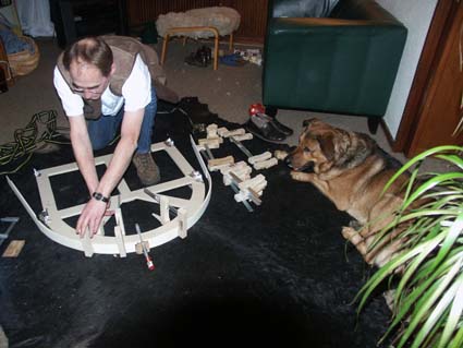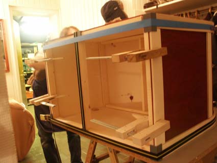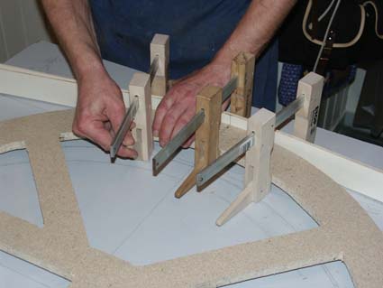 | Mit Hilfe von drei Leisten werden die Stirnwände in