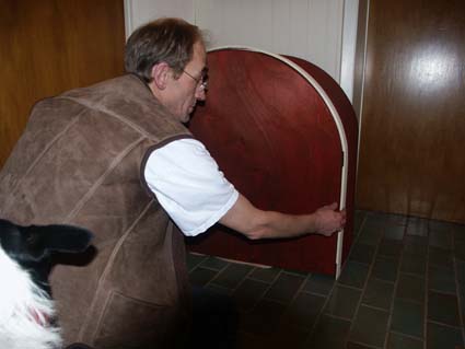 | Die Bass auf der Bodenplatte. Kasperles fragender Blick