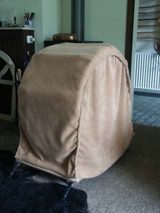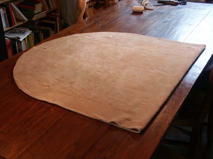 Die Polsterung wird probehalber über die Trommel gestülpt: