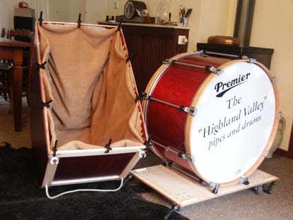 Dann nimmt der Bass Drummer sein BassCase, dass seine Bass Drum
