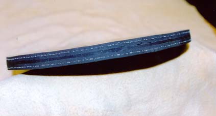 Die Ränder können nun mit dem Teppichmesser versäubert werden, wer über einen Bandschleifer verfügt kann auch diesen benutzen. Das Gummi sollte dann aber nur kurzen Kontakt mit dem Schleifband haben, da die Reibungshitze die Klebung wieder aufheben könnte. Am besten ist es, die Klebung über Nacht auskristallisieren zu lassen und erst dann zu schleifen. Nebenbei bemerkt: Wenn man keine Absaugung hat verursacht das Schleifen in der Werkstatt eine herrliche Schweinerei! ;-)
