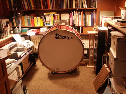 Den wirklichen Sound der Hosbilt werde ich erst morgen erleben: Erstaunt musste ich feststellen, dass ich keinen einzigen Bass Beater im Hause habe - sie sind alle im Band Depot. Zum Üben und Tunen benutze ich ein Paar alte Tenor Beater, aber die bringen natürlich nicht den Klang einer Bass zum Strahlen.